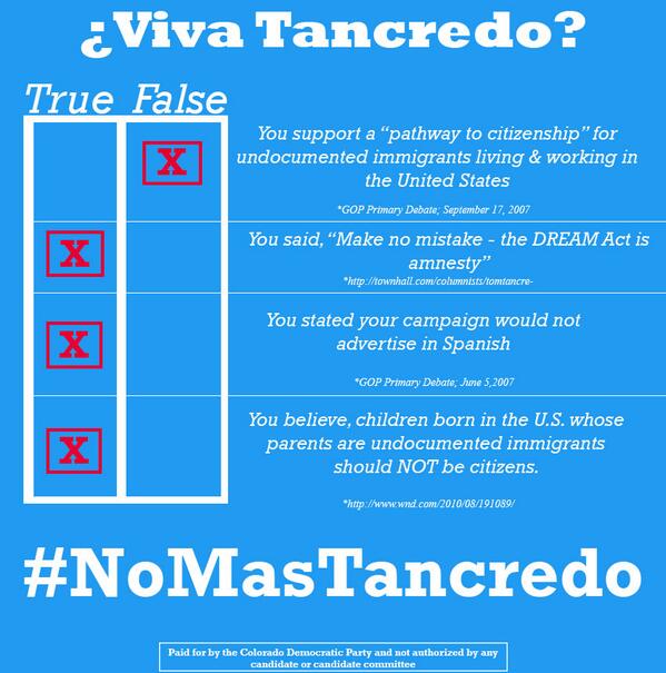 #NoMasTancredo ("No more Tancredo") and called Tancredo "the same old